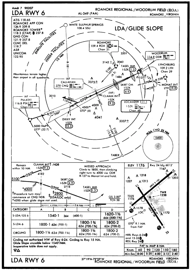 How should the pilot identify the missed approach point for the S-LDA GS 6 approach to Roanoke Regional?