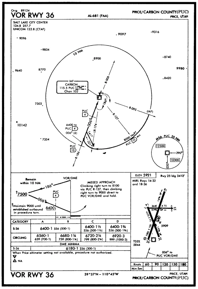 What type entry is recommended for the missed approach holding pattern depicted on the VOR RWY 36 approach chart for Price/Carbon County Airport?