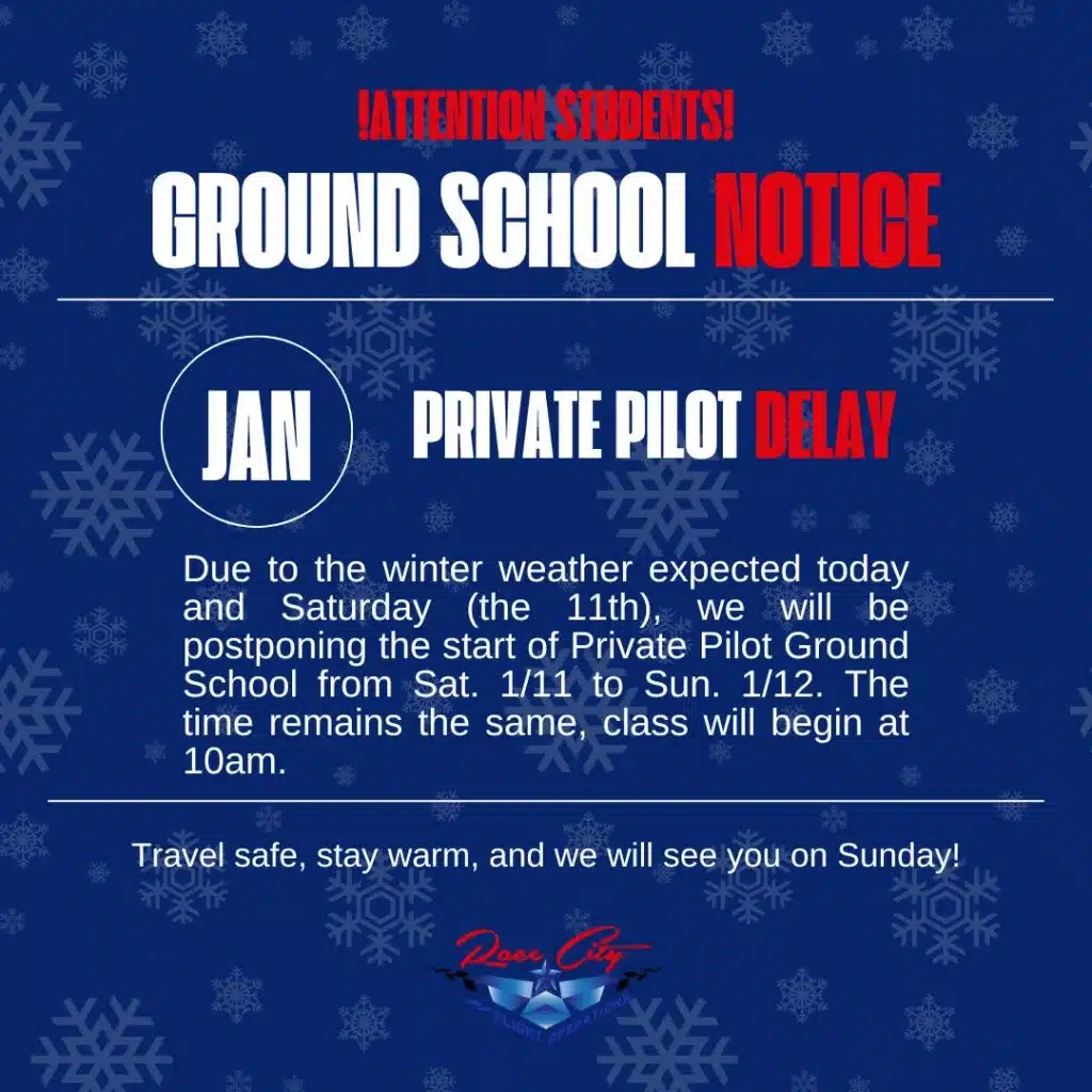Our Private Pilot Ground School session is coming up, starting this weekend and extending through the end of January — don’t miss out and sign up today! ✈️✈️
