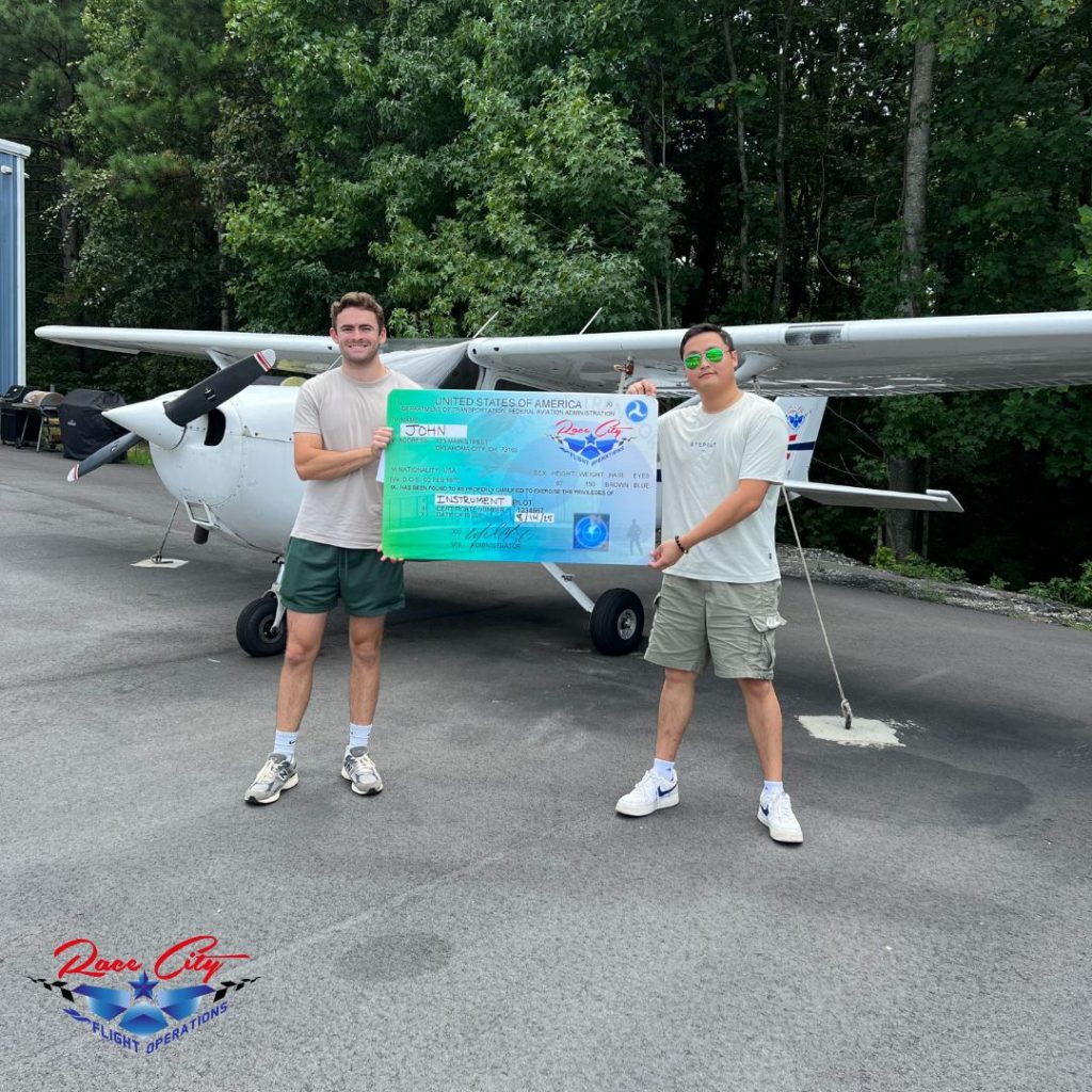 Congratulations to John, our newest IFR rated pilot — the clouds don’t stand and chance! ☁️👏✈️ (ft. CFI Jinhang to the right)